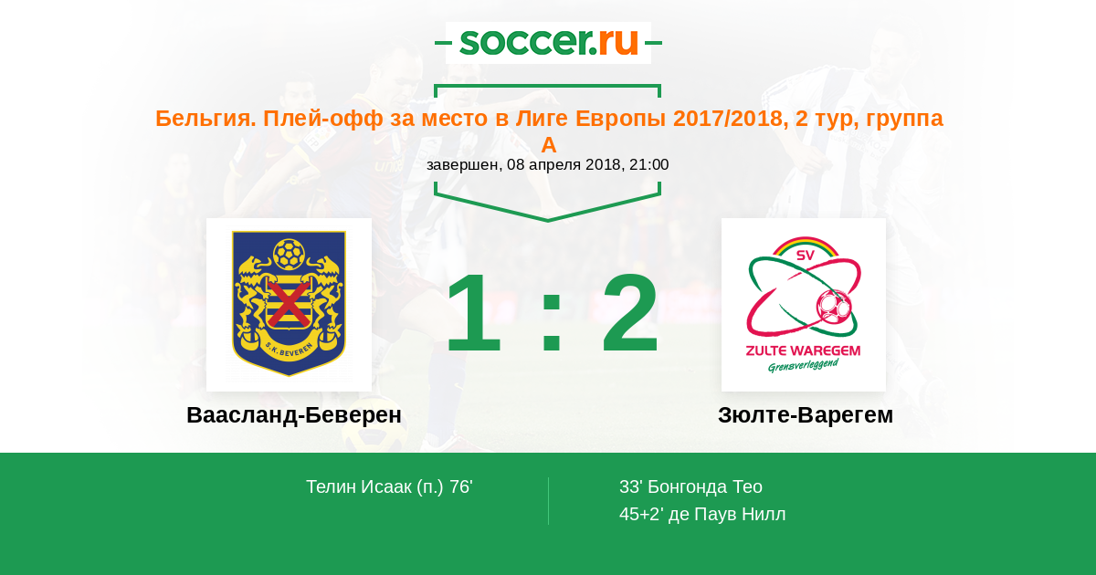 Протокол матча Ваасланд-Беверен против Зюлте-Варегем