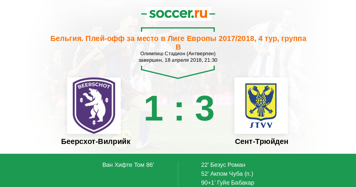 Протокол матча Беерсхот-Вилрийк против Сент-Трюйден