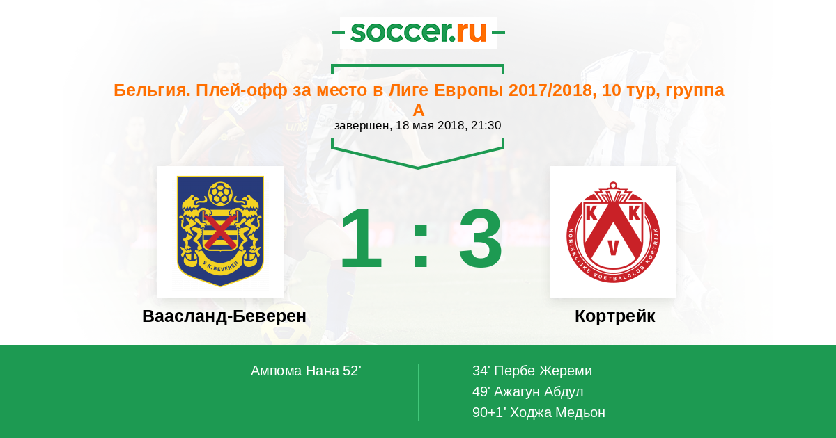 Протокол матча Ваасланд-Беверен против Кортрейк