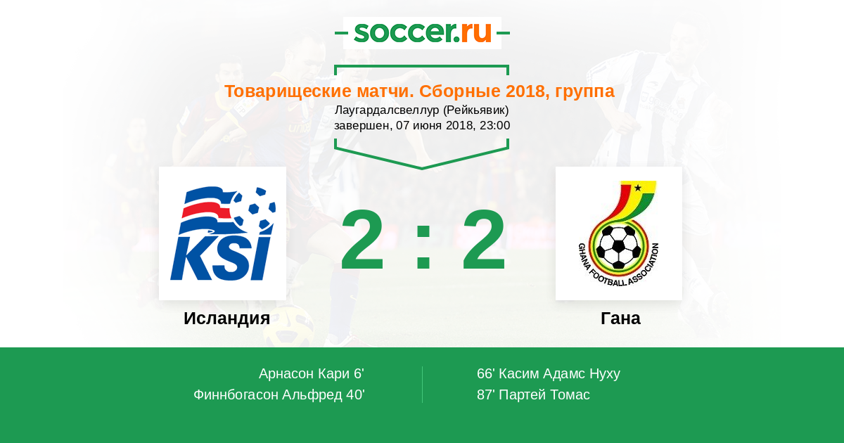 6' (1:0) Арнасон Кари (14) (Гудмундссон Йохан (7))