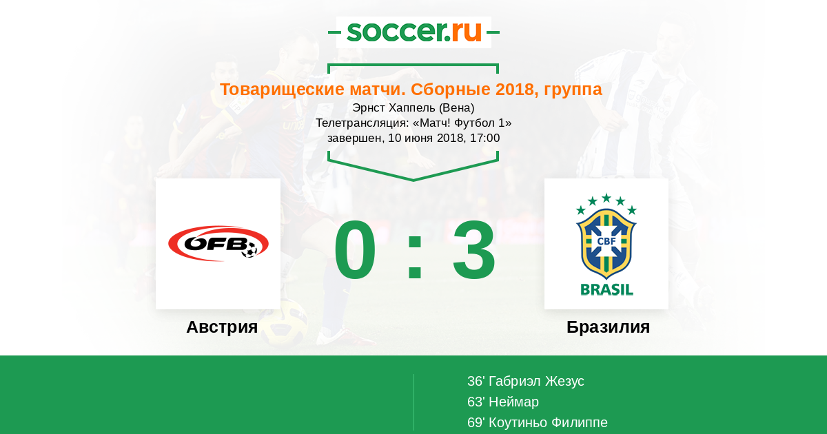 Протокол матча Австрия против Бразилия