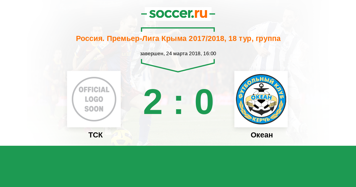 Россия. Премьер-Лига Крыма 09.09.2017 ТСК Логотип футбольный клуб ТСК (Симферополь) 2:0 Логотип футбольный клуб Океан (Керчь) Океан