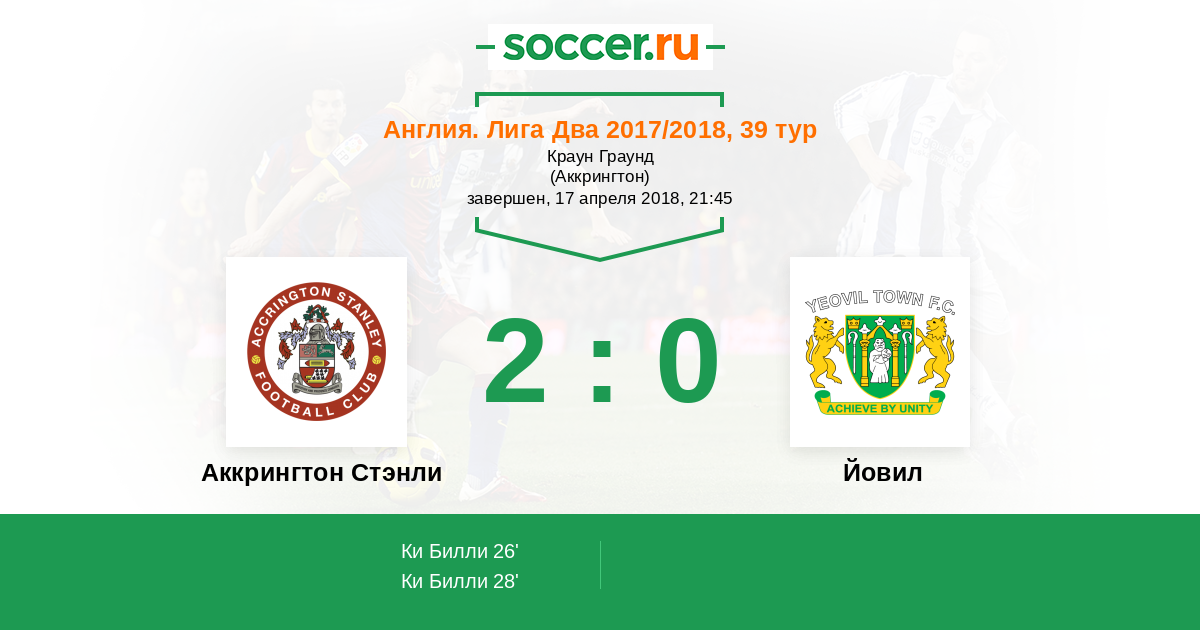 Протокол матча Аккрингтон Стэнли против Йовил