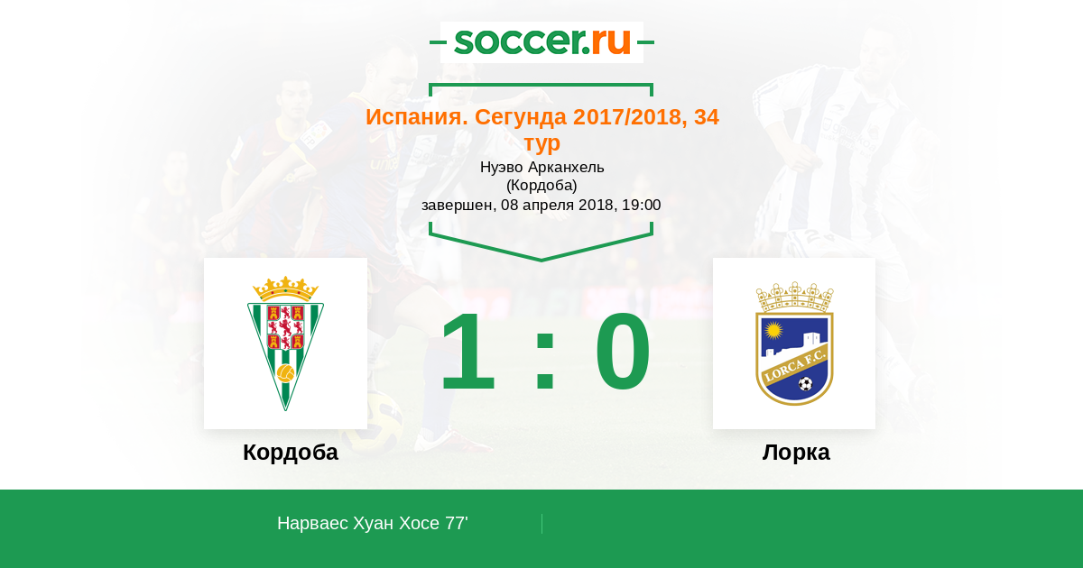 Протокол матча Кордоба против Лорка