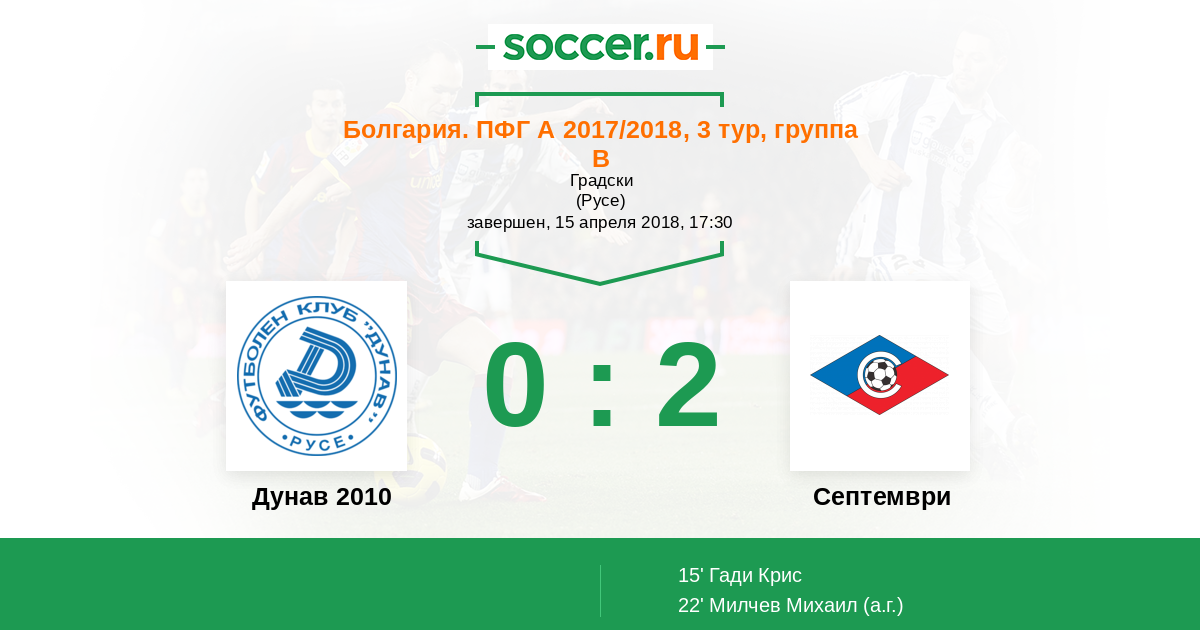 Протокол матча Дунав 2010 против Септември