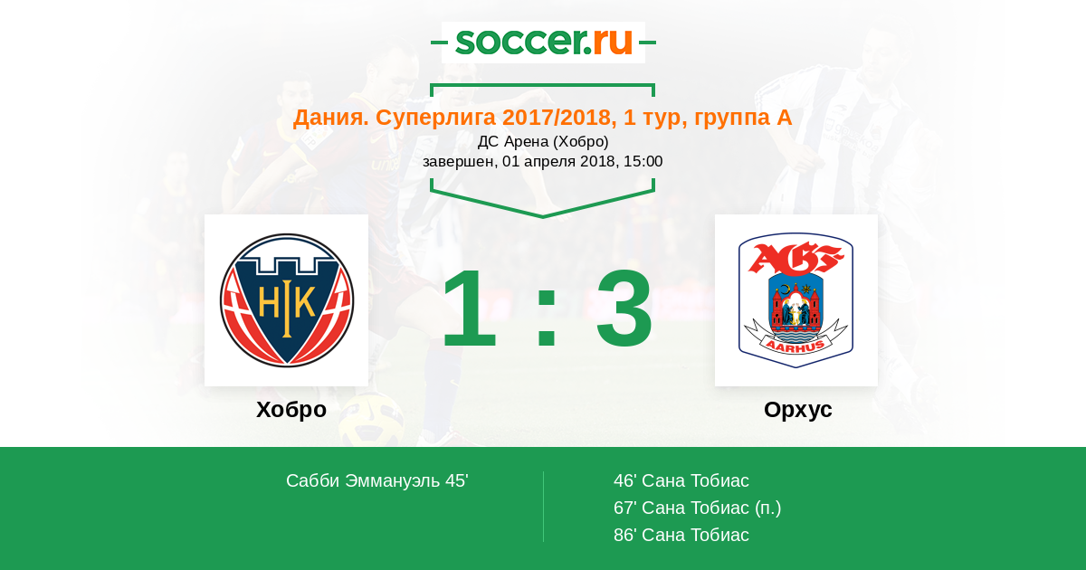 Протокол матча Хобро против Орхус