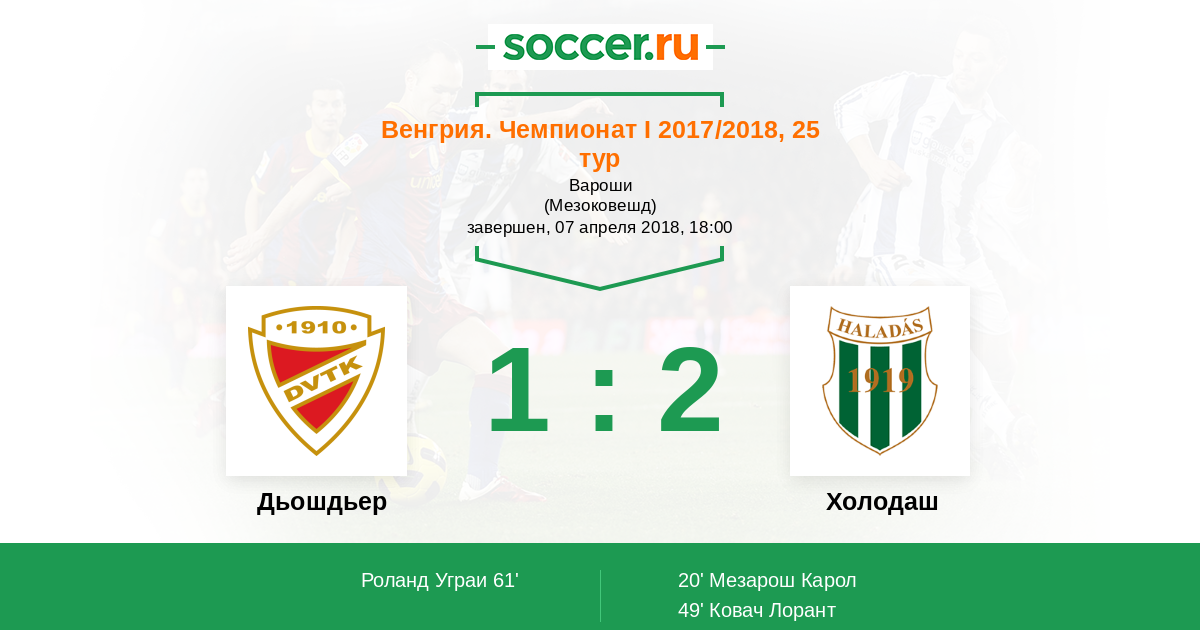 Протокол матча Дьошдьер против Холодаш