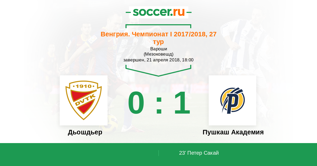 Протокол матча Дьошдьер против Пушкаш Академия