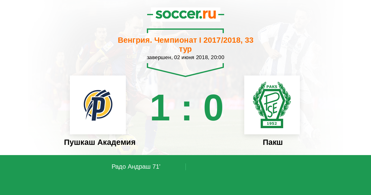 Протокол матча Пушкаш Академия против Пакш