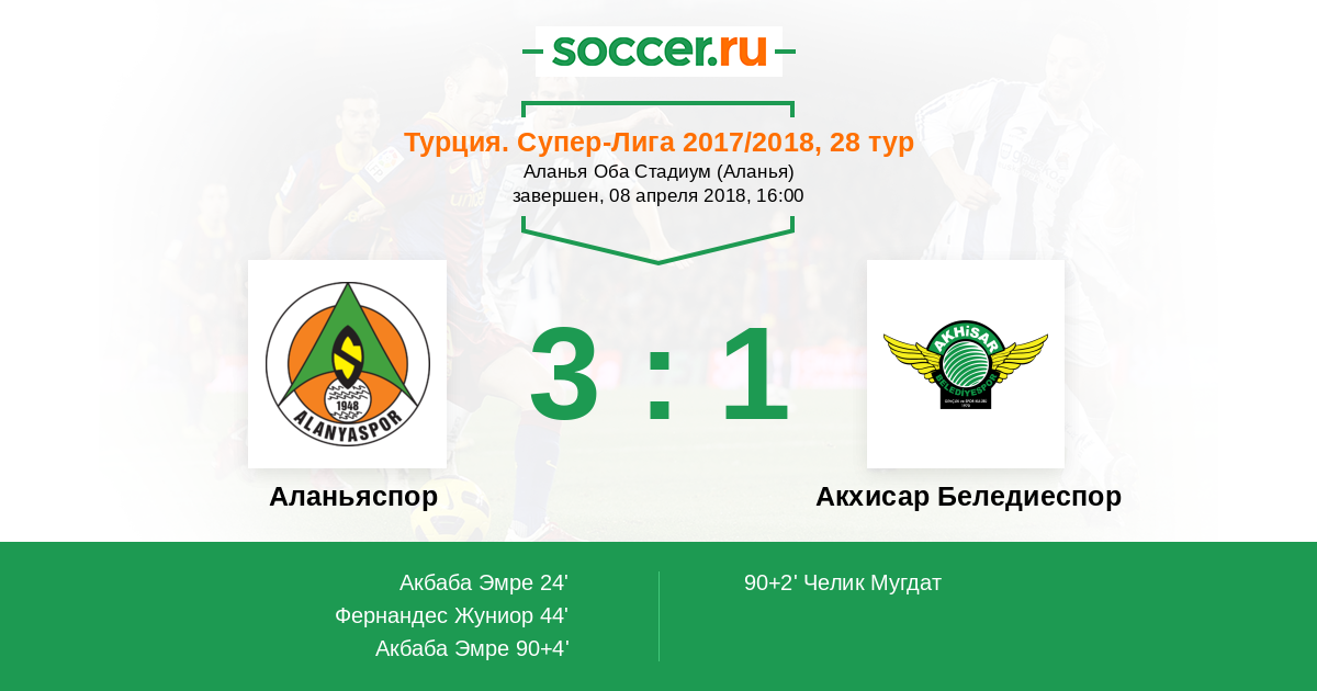 Протокол матча Аланьяспор против Акхисар Беледиеспор