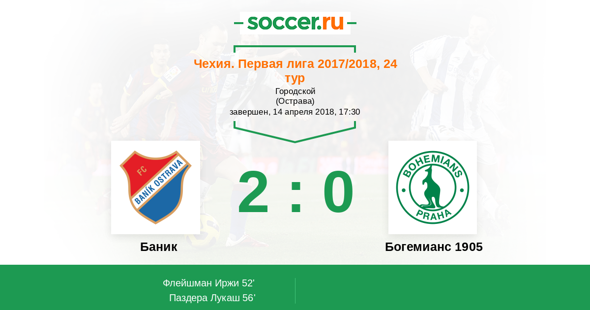 Протокол матча Баник против Богемианс 1905