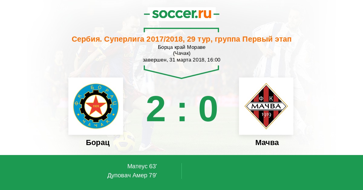 Протокол матча Борац против Мачва