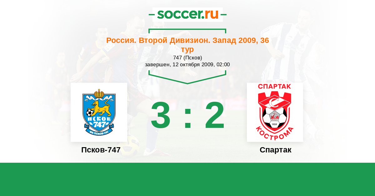 Россия. Вторая лига. Группа 2 07.10.2010 Спартак Кострома Логотип футбольный клуб Спартак Кострома 0:1 Логотип футбольный клуб Псков-747 Псков-747