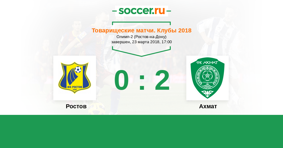 Россия. Кубок 21.02.2021 Ростов Логотип футбольный клуб Ростов (Ростов-на-Дону) 0:1 Логотип футбольный клуб Ахмат (Грозный) Ахмат
