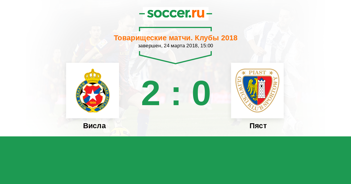 Польша. Экстракласса 04.03.2016 Висла Логотип футбольный клуб Висла (Краков) 1:1 Логотип футбольный клуб Пяст (Гливице) Пяст
