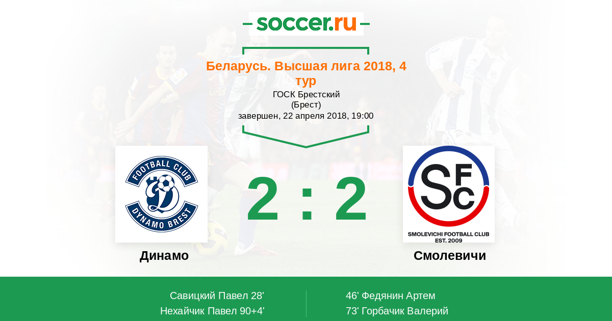 Протокол матча Динамо против Смолевичи
