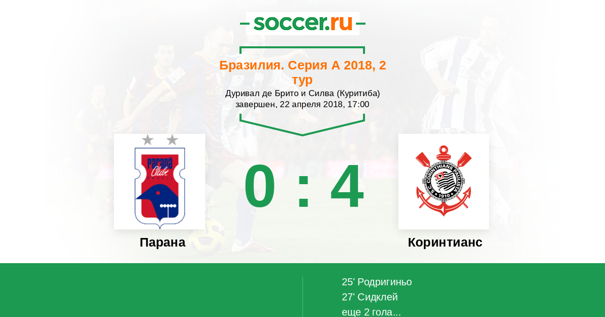 25' (0:1) Родригиньо (26) (Сидклей (16))
