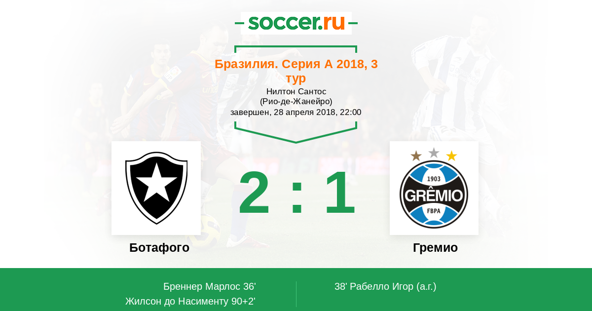 90+2' (2:1) Жилсон до Насименту (6) (Эсекьель (20))