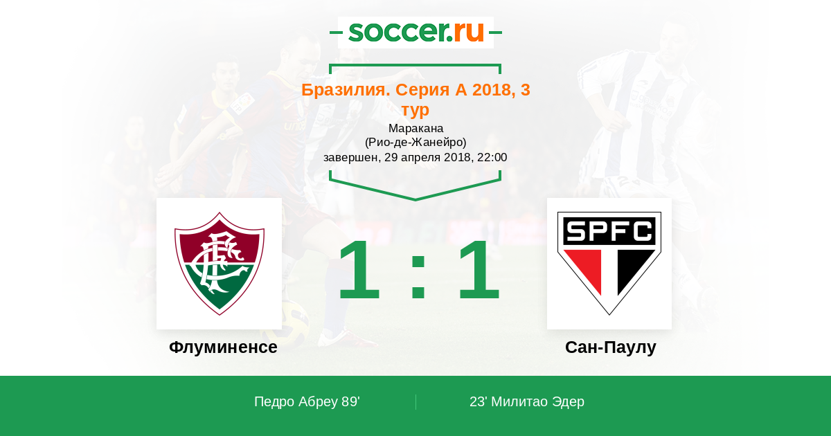 89' (1:1) Педро Абреу (9) (Робсон (17))