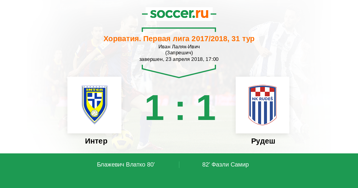 Протокол матча Интер против Рудеш