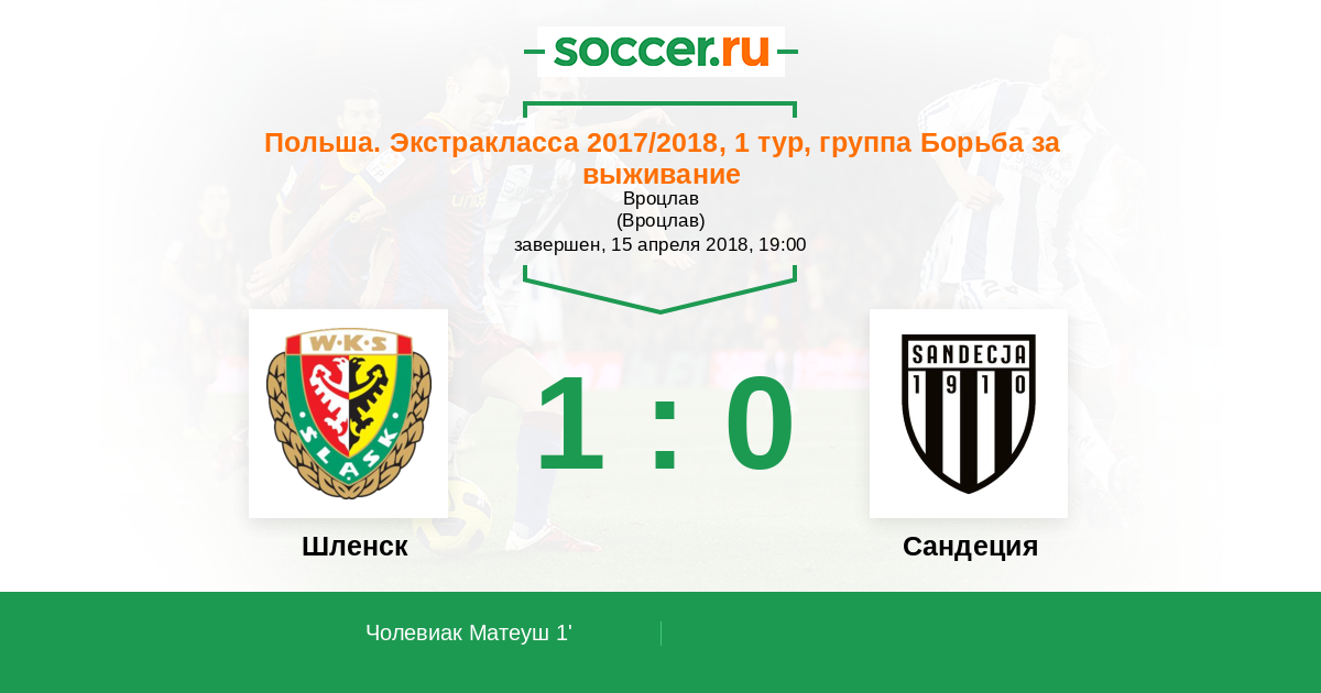 Протокол матча Шленск против Сандеция