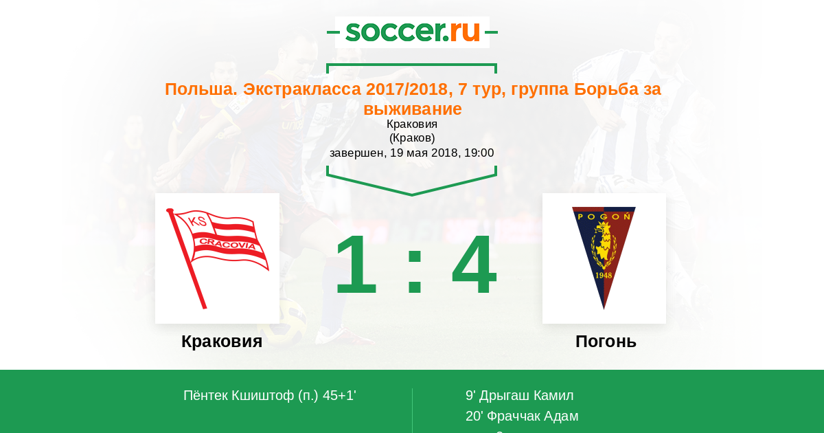 Протокол матча Краковия против Погонь