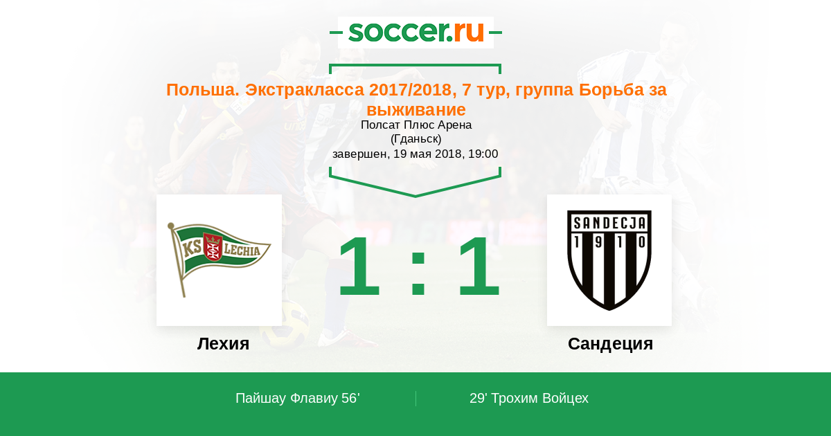 Протокол матча Лехия против Сандеция