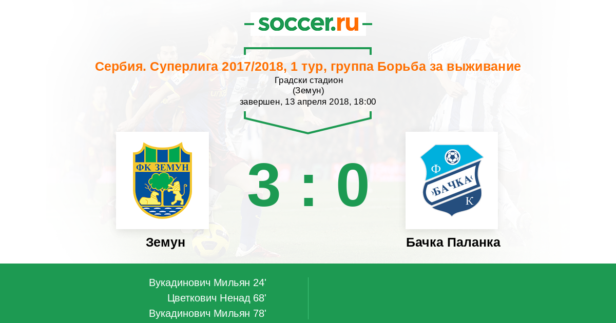 Протокол матча Земун против Бачка Паланка