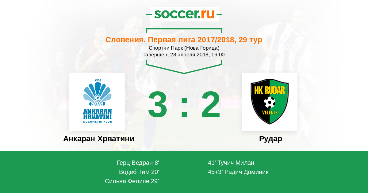 Протокол матча Анкаран Хрватини против Рудар