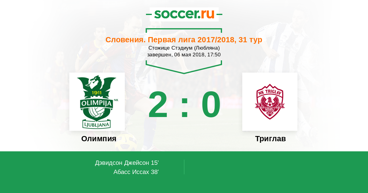 Протокол матча Олимпия против Триглав