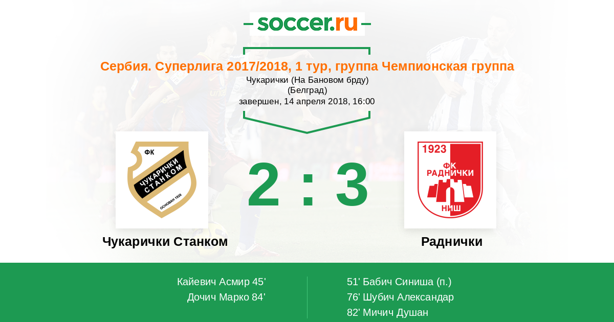 Протокол матча Чукарички Станком против Раднички
