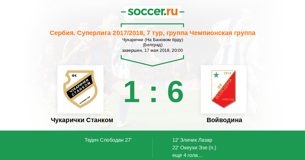 Протокол матча Чукарички Станком против Войводина