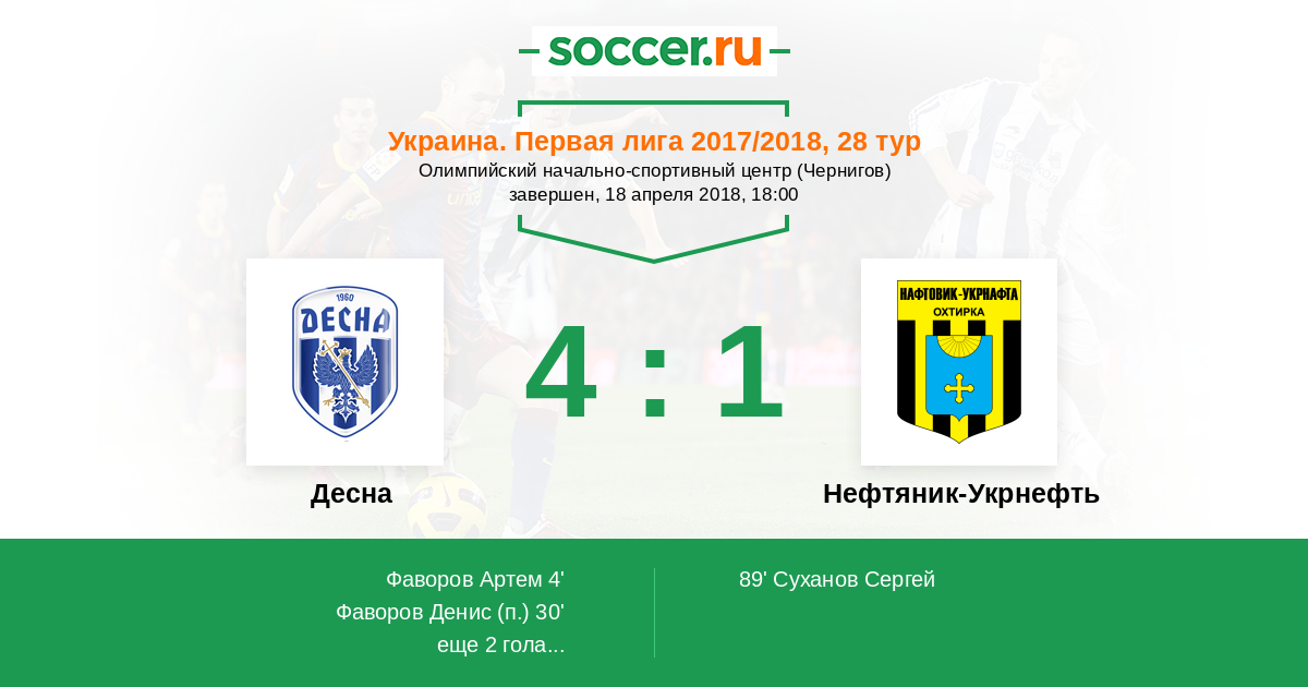 Протокол матча Десна против Нефтяник-Укрнефть