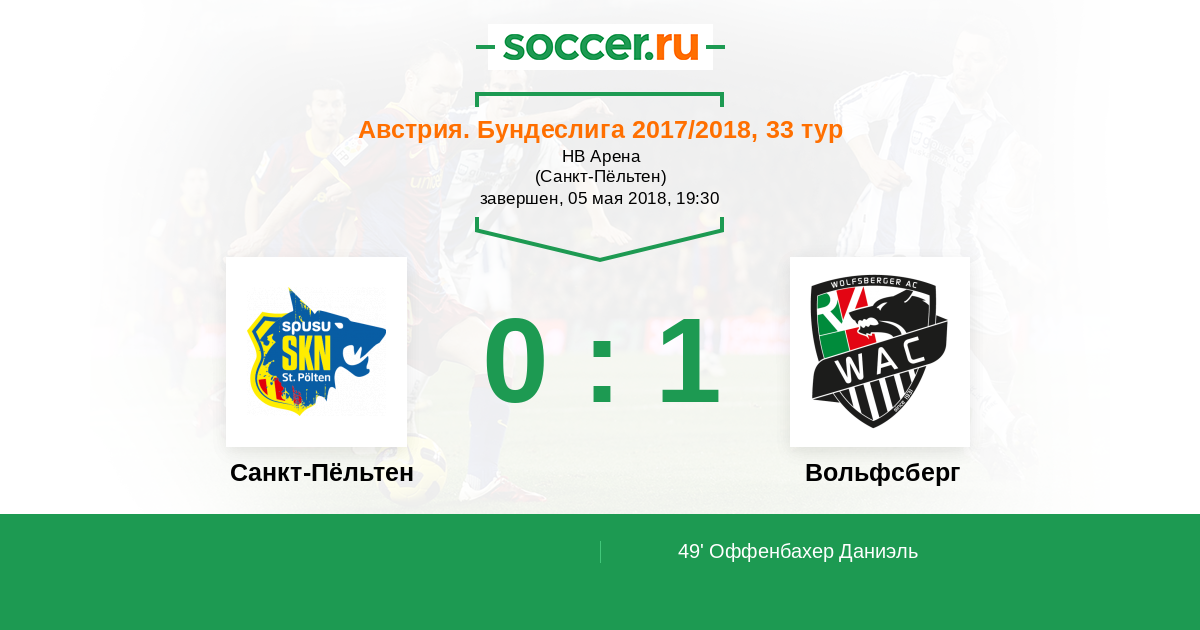 Протокол матча Санкт-Пёльтен против Вольфсберг