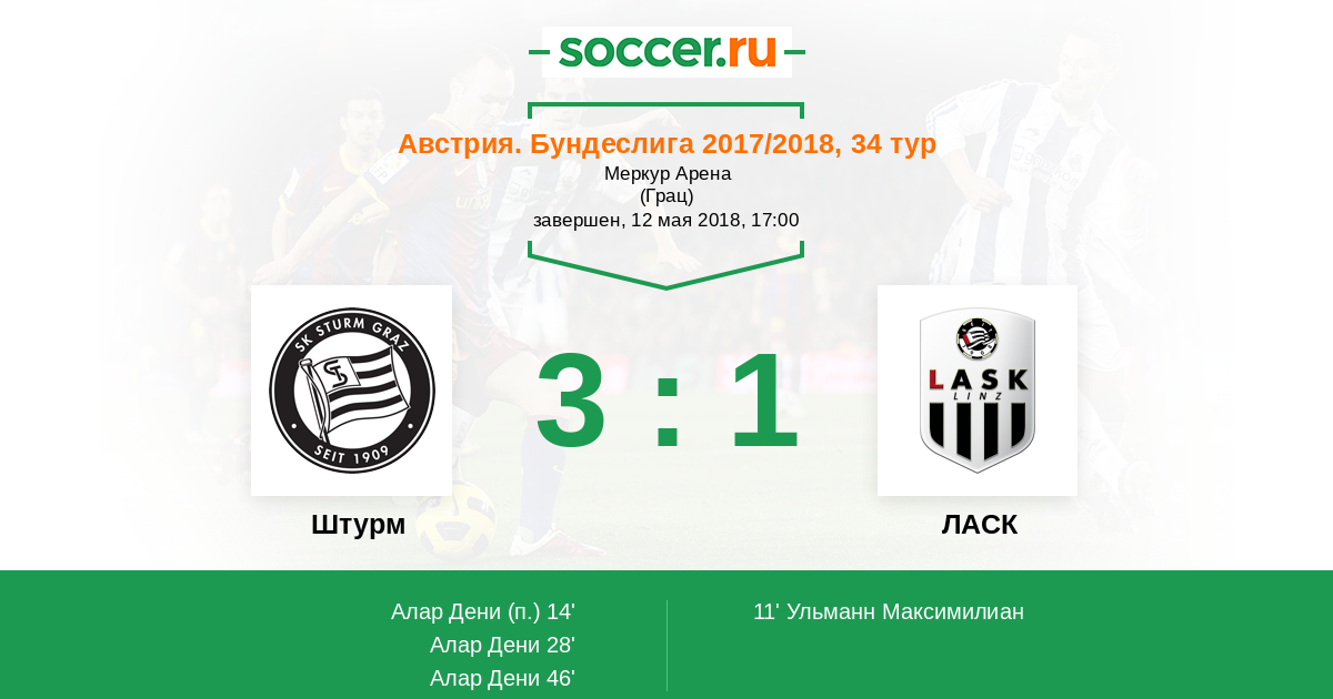Протокол матча Штурм против ЛАСК