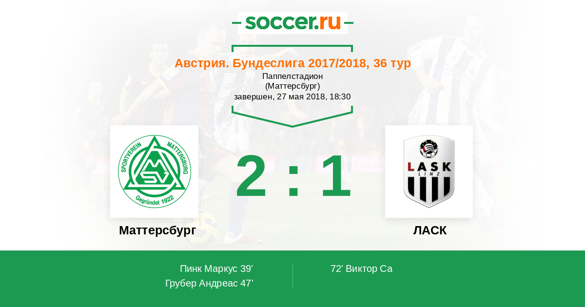 47' (2:0) Грубер Андреас (11) (Превляк Смаил (14))