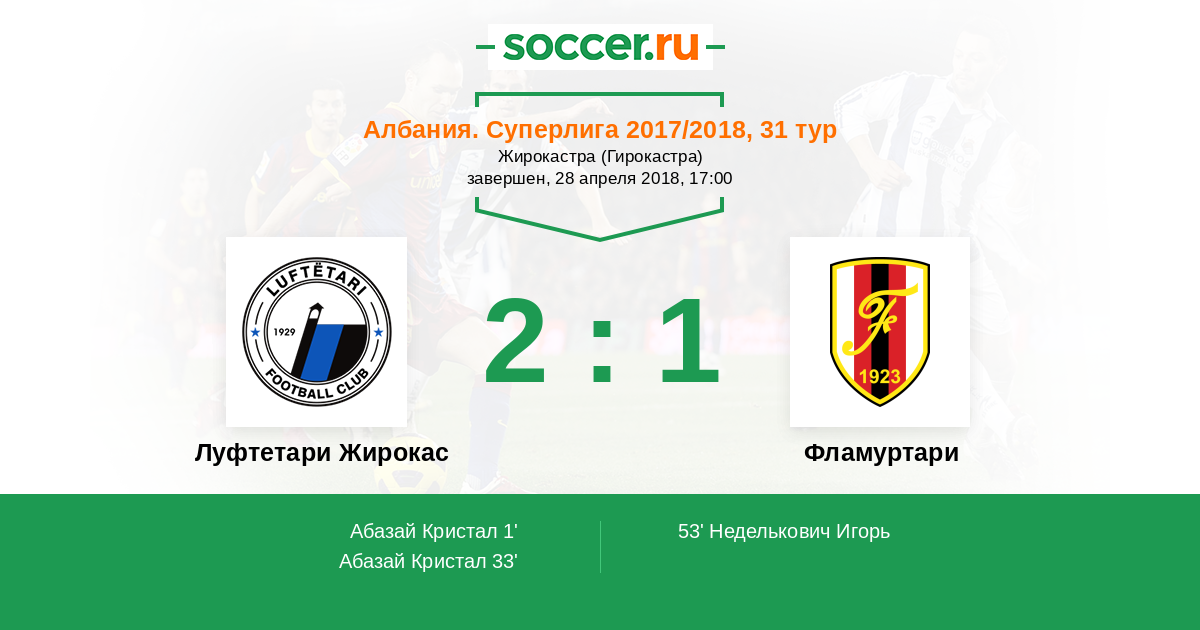 Протокол матча Луфтетари Жирокас против Фламуртари