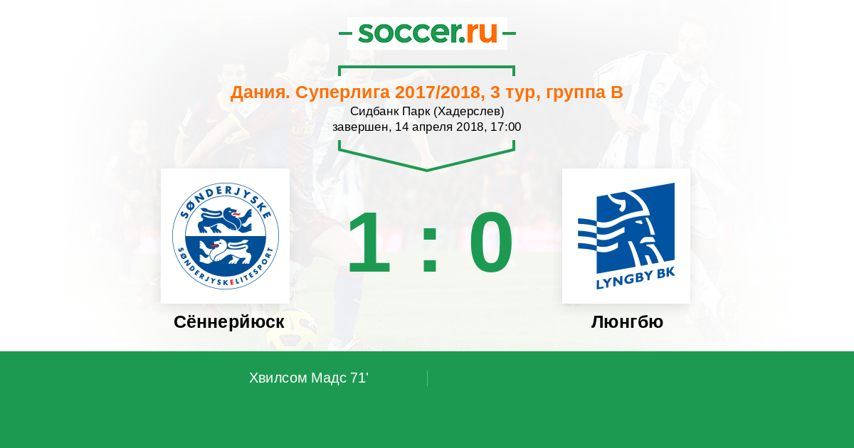 Протокол матча Сённерйюск против Люнгбю