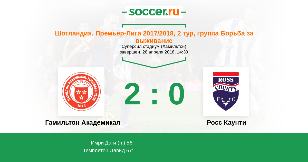 Протокол матча Гамильтон Академикал против Росс Каунти