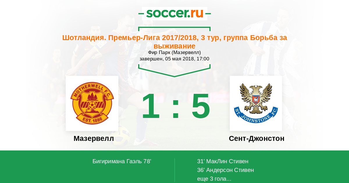 Протокол матча Мазервелл против Сент-Джонстон