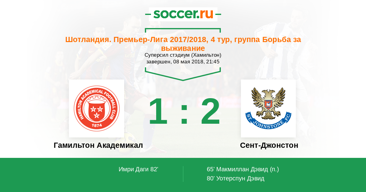 Протокол матча Гамильтон Академикал против Сент-Джонстон