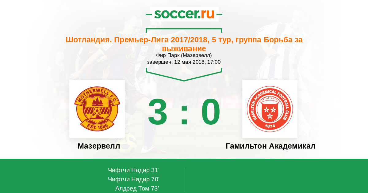 Протокол матча Мазервелл против Гамильтон Академикал