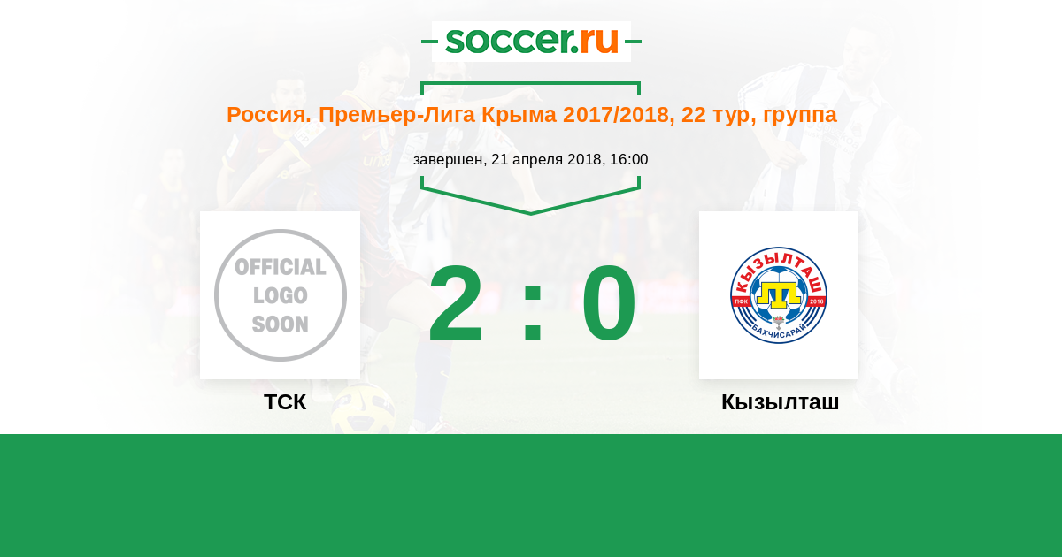 Россия. Премьер-Лига Крыма 11.11.2018 ТСК Логотип футбольный клуб ТСК (Симферополь) 2:1 Логотип футбольный клуб Кызылташ (Бахчисарай) Кызылташ
