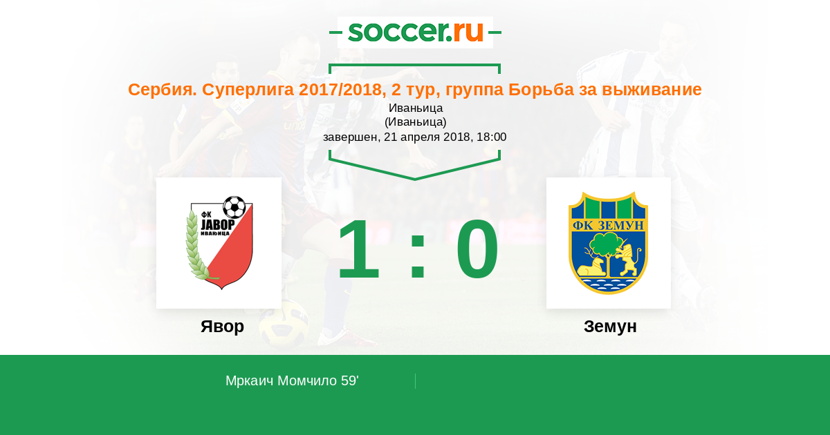 Протокол матча Явор против Земун