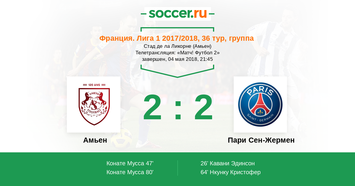 47' (1:1) Конате Мусса (15) (Монкондьют Тома (6))