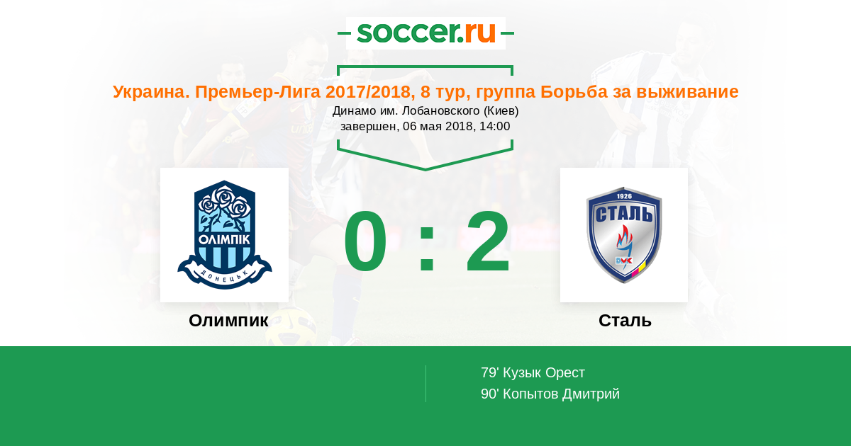 Протокол матча Олимпик против Сталь
