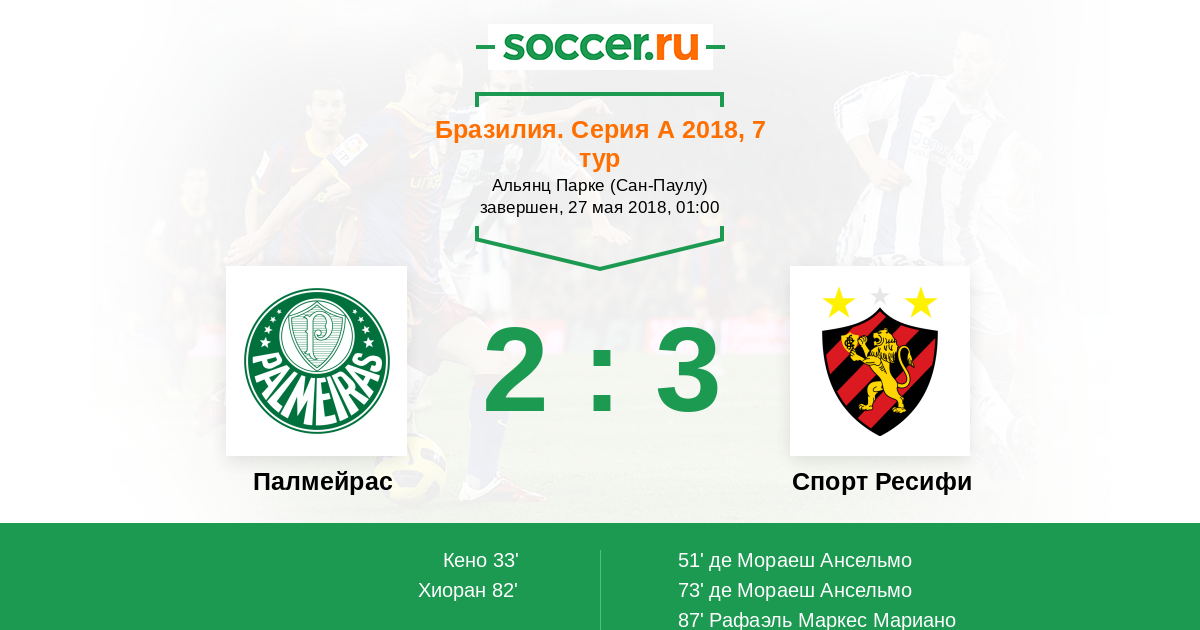 Протокол матча Палмейрас против Спорт Ресифи
