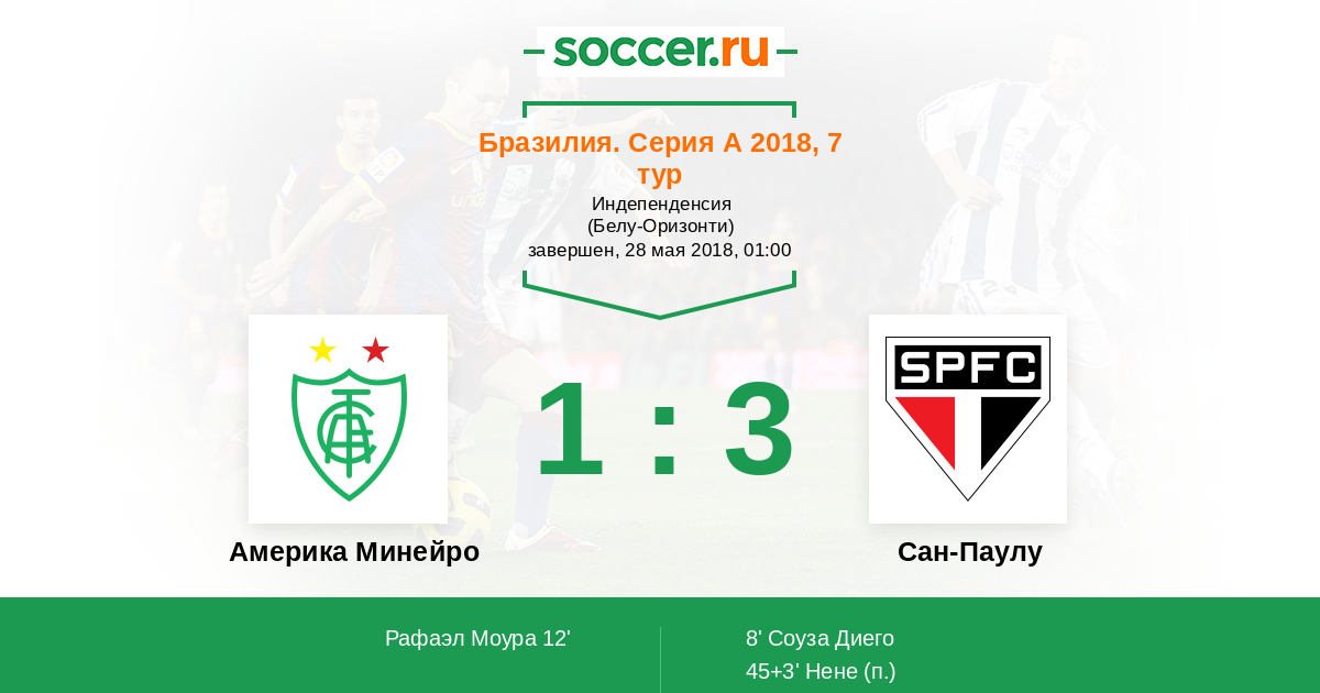 Протокол матча Америка Минейро против Сан-Паулу