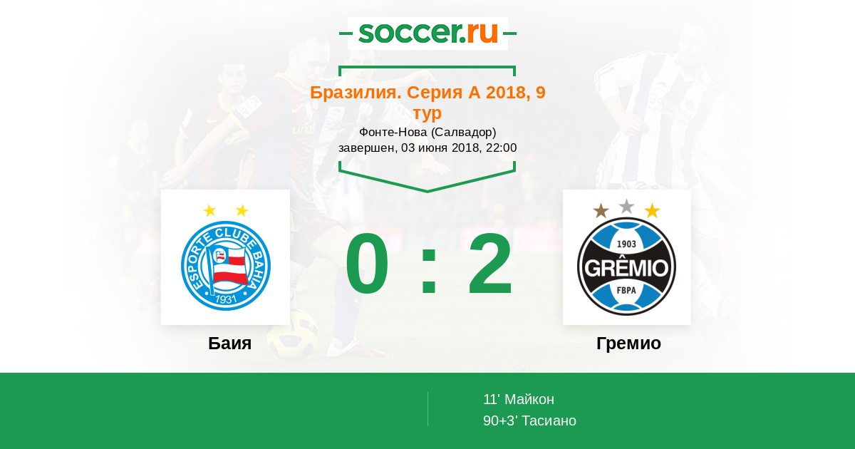 Протокол матча Баия против Гремио