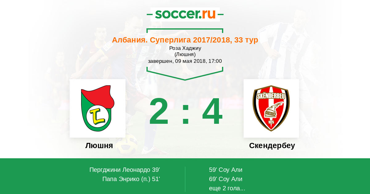 Протокол матча Люшня против Скендербеу